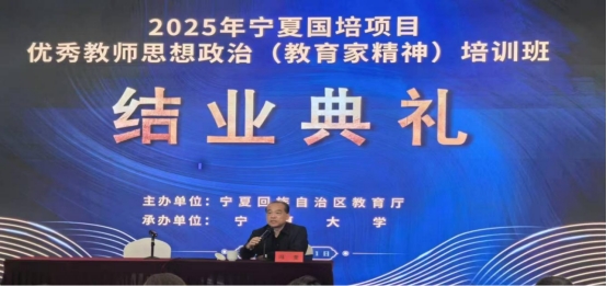 2025年10月27日—10月31日,由宁夏大学承办的2025年“国培计划”中西部骨干项目—优秀教师思想政治(教育家精神)示范培训项目顺利完成。来自全区中小学一线且近5年获得县级以上表彰奖励、通报表扬、选树宣传的200名优秀教师参加了本次培训。