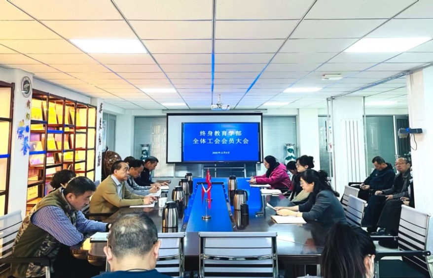 12 月 8 日,终身教育学部分工会换届选举大会隆重召开。会议由学部党总支书记冯奎主持,全体工会会员齐聚一堂,共同参与换届选举工作。本次大会应到会员 29 人,实到 27 人,参会人数符合法定程序要求,会议合法有效。