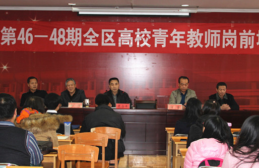 此次岗前培训分为三期,共有全区18所高校的639名教师参加,第46期已于1月5日——10日培训完毕,并圆满结束。为了保证培训质量和效果,本次岗前培训开设了“高等教育学”、 “高等教育心理学”、“高等教育法规”、“高校教师职业道德修养”四门主干课程。同时,开设“心理健康”、 “教师礼仪”、“高校辅导员及班主任工作”、“精品课程建设”、“大学与人文精神” 等新教师入职教育内容。在专家配置上,聘请学术造诣深厚的教授、教书育人当属楷模的教学名师为学员授课;在组织管理上,实行班主任目标责任制度、分校考勤考核制度和班级自主管理制度等措施来加强组织管理。
